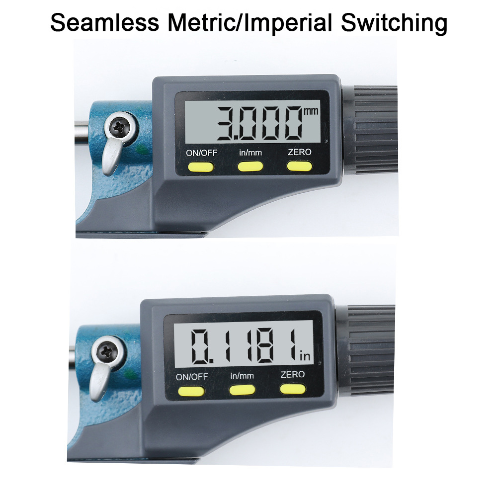 0-25mm Outside Micrometer High-Precision 0.001mm Digital Micrometer with Metric & Imperial Switching