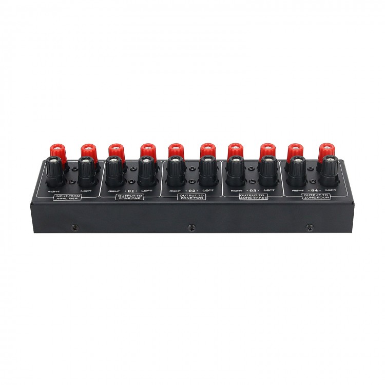 Are you stuck with the problem that a set of power amplifier signals need to be assigned to several speakers? Now this distribution panel can solve the problem of allocating one set of stereo inputs to four sets of speakers at the same time.