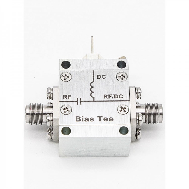 100kHz-1.0GHz 2A High Current Bias Tee 50ohms 50V RF DC Block with Stainless Steel RF-SMA Female to RF/DC-SMA Female Connector