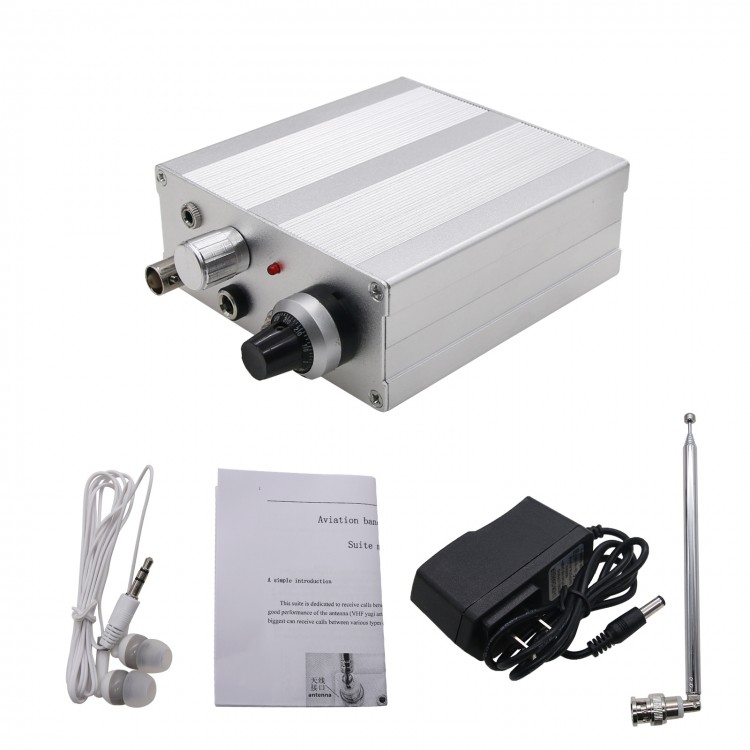 Aviation Band Receiver with AM pattern and frequency between 118 and 136 MHZ, you can receive the signals from the tower and the aircraft with a whip antenna within 5-10 kilometers and signals from the nearby plane beyond 10 kilometers from the airport