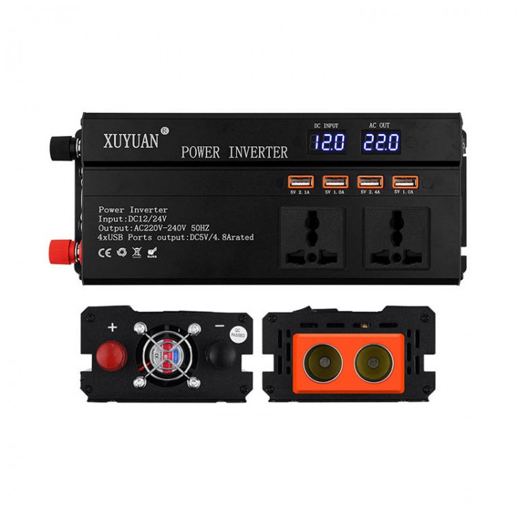 1200W DC 12V/24V to 220V Car Power Inverter Solar Power Inverter with LED Display Universal Socket