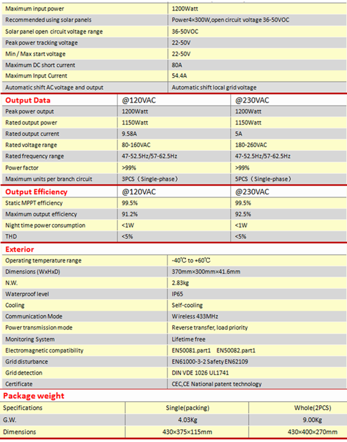 1200W Waterproof Micro Grid Tie Inverter Solar Inverters Power Inverter Auto Identification of Voltage