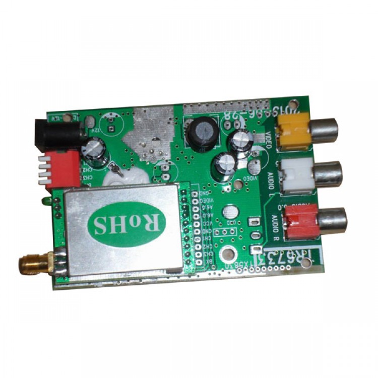 - 2.4G 1W launch assembled board, audio video input is on PCB board, output RCA base, with 8 channel change-over switch