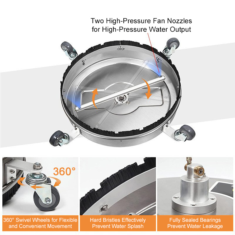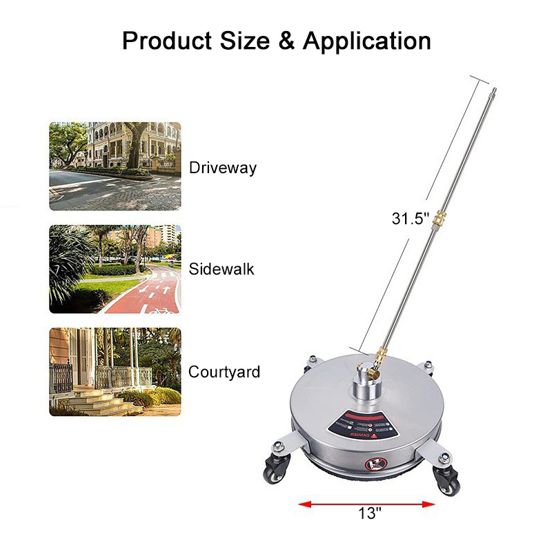 13" 4000PSI Stainless Steel Pressure Washer Surface Cleaner Attachment for Driveways and Sidewalks