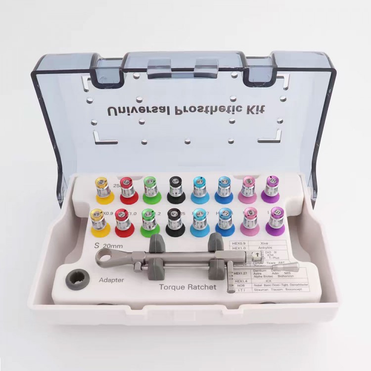 15-60N.cm Universal Prosthetic Kit Dental Implant Torque Wrench Kit with Torque Ratchet & 16 Drivers