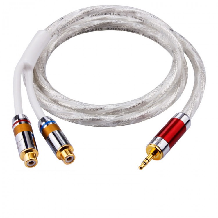 1m/3.3ft Silver-Plated 3.5mm to 2 RCA Female Splitter Cable 3.5mm to Dual RCA Female Extension Cable