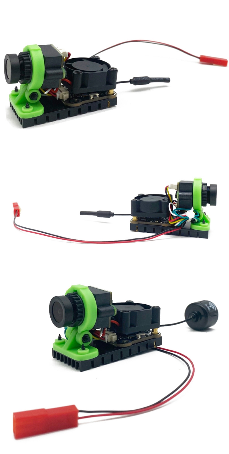- 1000mW video transmitter + camera set supports four levels of adjustable power. Access voltage 7-24V or 2-4S model aircraft battery.