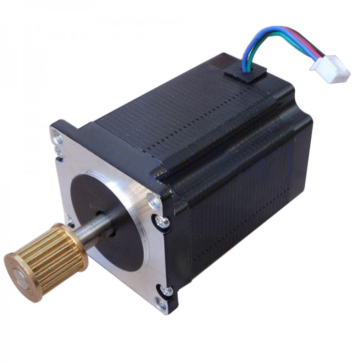 High quality and 2 phase 4 TVL 57 stepper motor, large torque. Length is 76mm, with brass synchronous belt wheel.