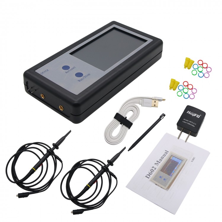 200KHz Digital Oscilloscope 2 Channel Mini Portable Oscilloscope Pocket Sized Touch Panel LCD D602