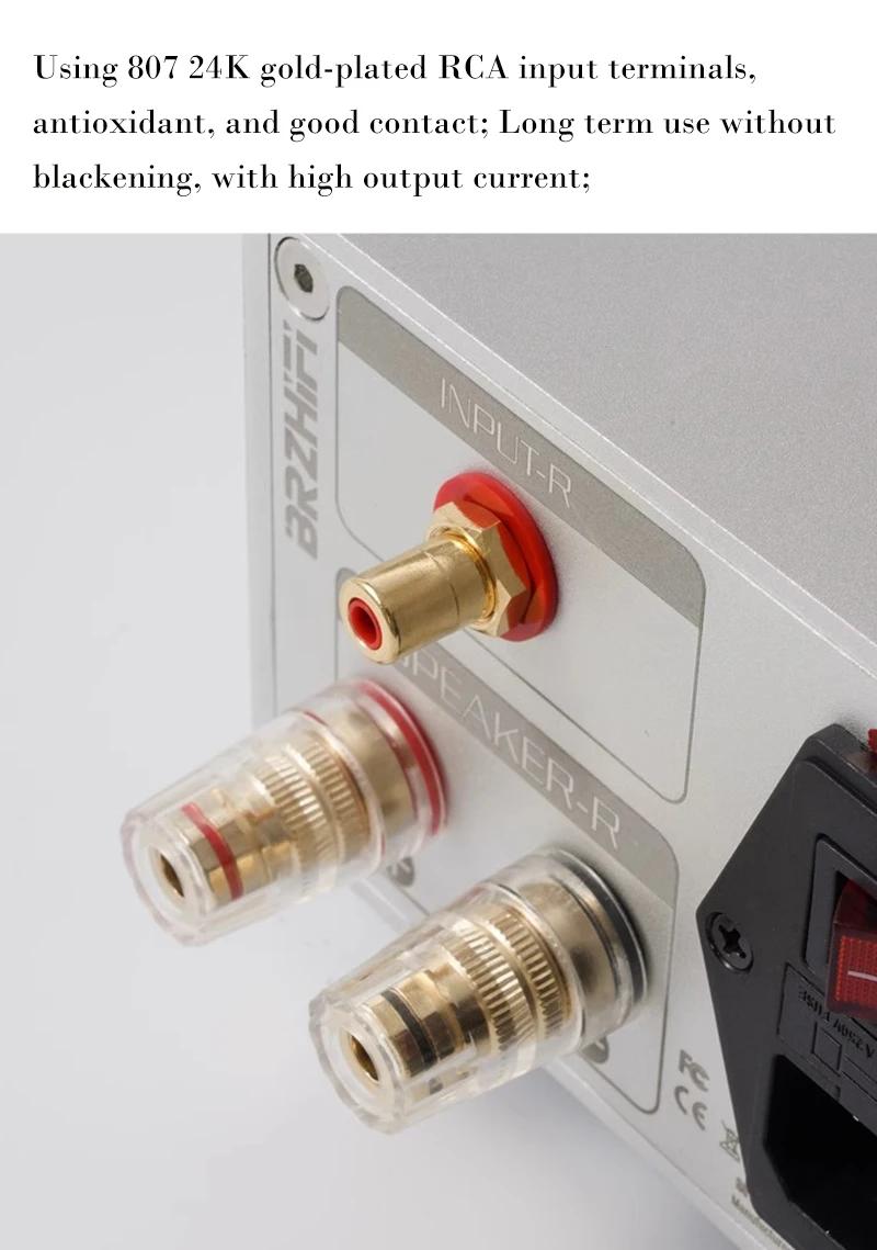 - The terminal adopts 807 24K gold-plated RCA input, with a golden light, oxidation resistance, and reliable contact; Large pure copper terminal blocks, used year-round without blackening, with high output current.