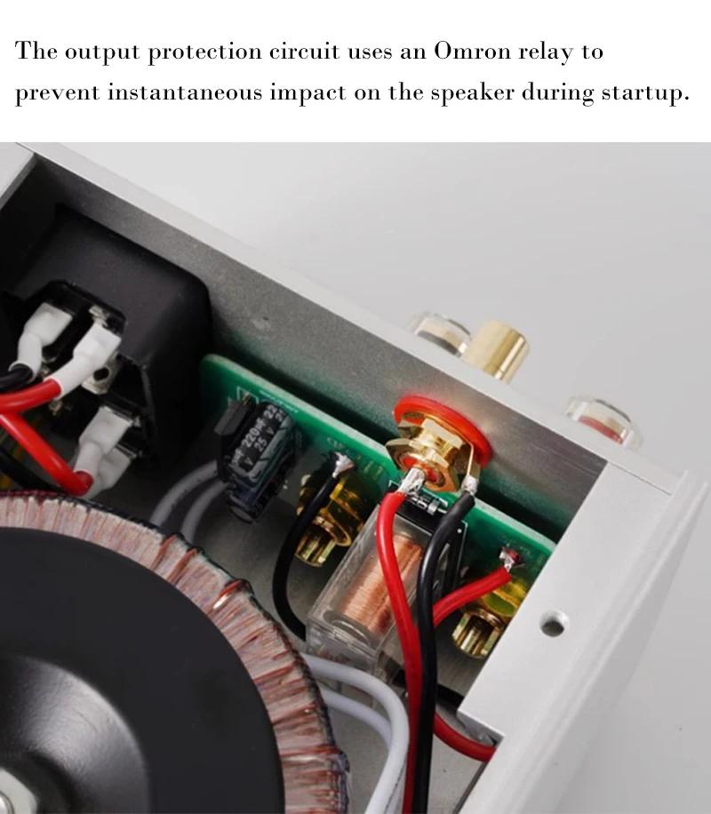 - The output protection circuit uses an Omron relay to prevent instantaneous impact on the speaker during startup and remove the popping sound generated during startup.