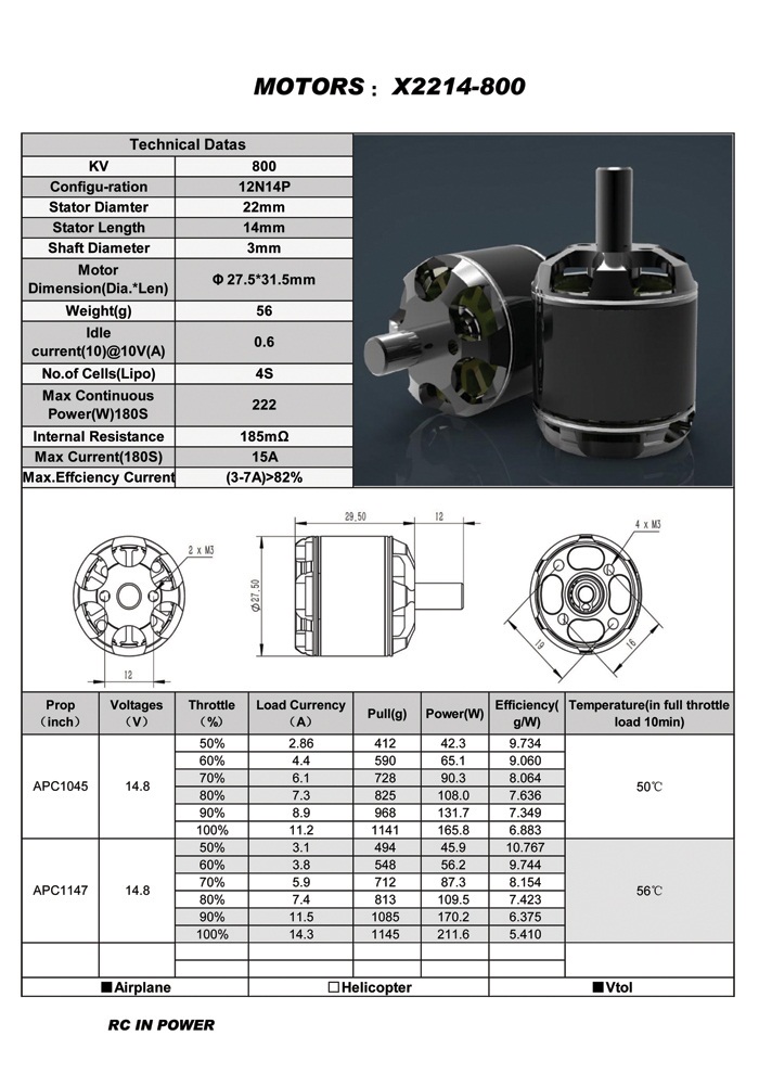 2214 Brushless Motor 800KV CW CCW for FPV Racing Drone Quadcopter Multivcopter 1 Pair