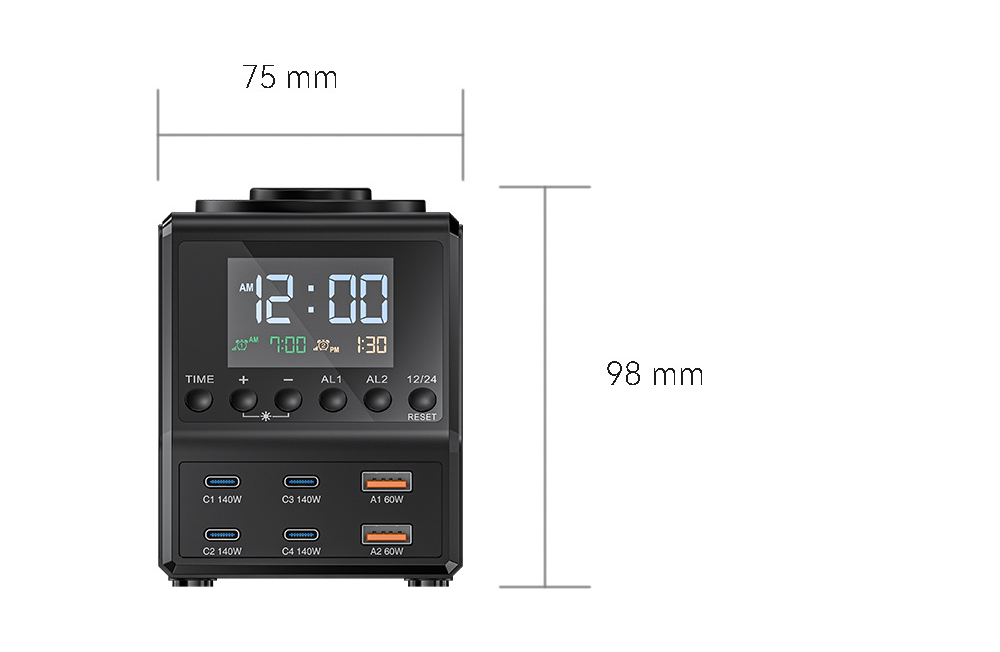 - Perfect combination of clock, alarm clock, and charger, fully charged after putting down your phone and sleeping; Two independent alarm clocks, set different alarms according to working days and holidays, with a simple interface and easy operation.