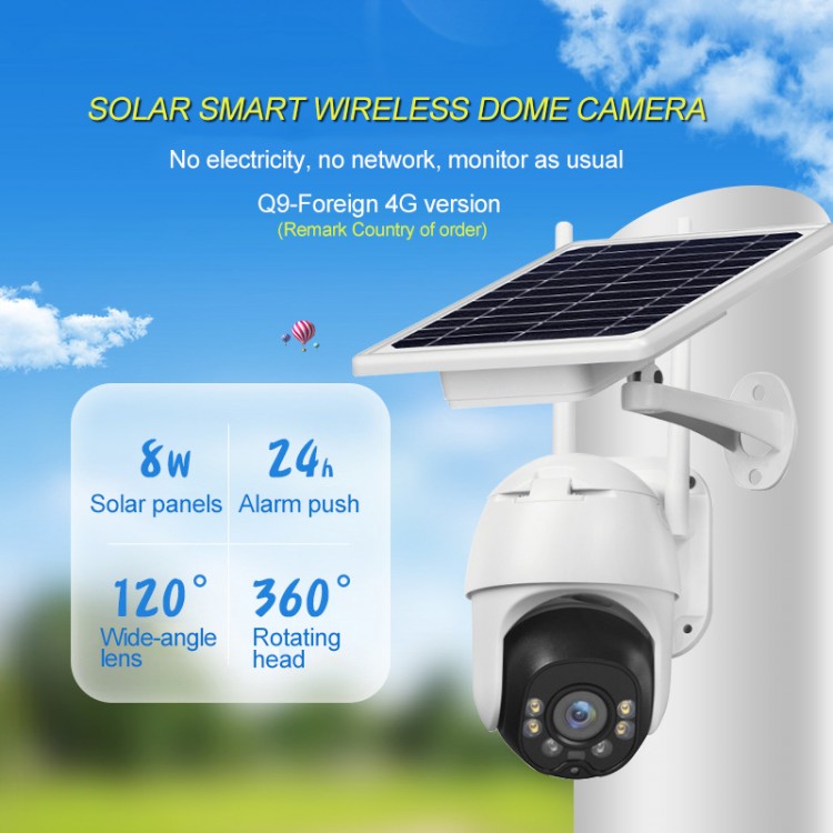 2MP Wireless Solar Camera Outdoor Dome Camera HD PTZ Security Camera Waterproof Q9-4G Version