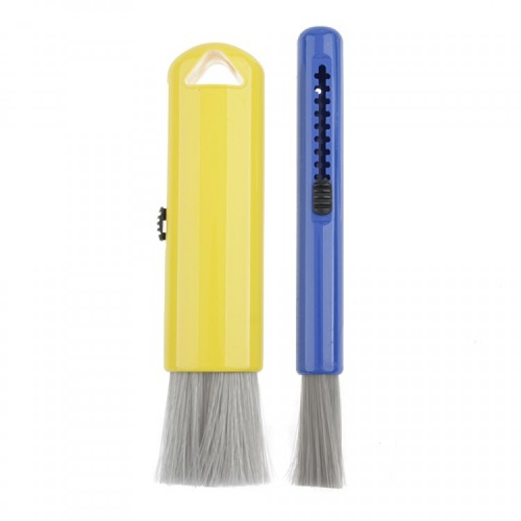 Features: Retractable cover protects, ultra soft bristle Gets into tight spaces, clean up your steering wheel or keyboard Good material and high quality Lightweight and portable, convenient for your life With slideable switch, you can adjust the length One large and one small, choose the suitable one Color: yellow and dark blue Dimension 1: 10.8cm x 1.4cm (L x Dia) Dimension 2: 10cm x 3cm x 2cm Package size: 25cm x 9cm x 2.5cm Package contains: 2 x Retractable Brushes