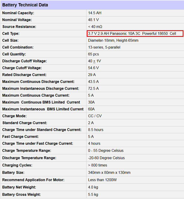 - 1 x 48V 14.5AH Down Tube Ebike Battery