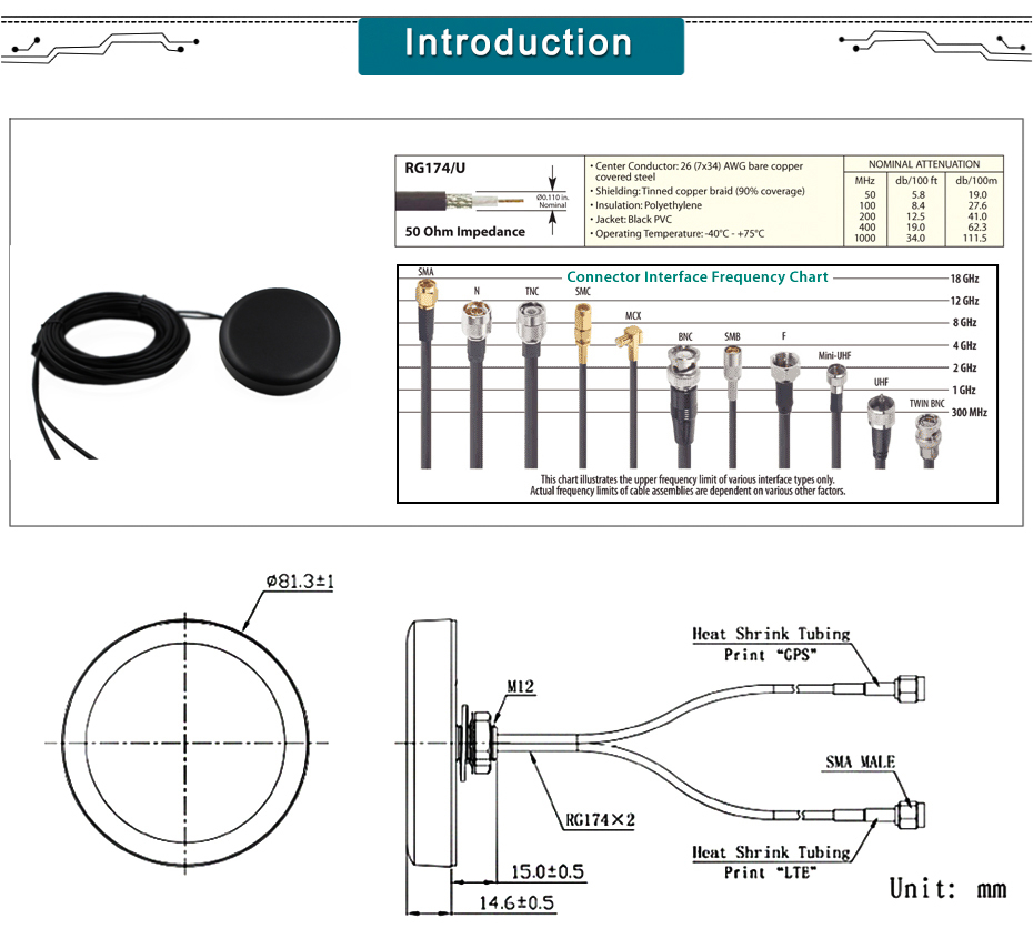 4G GPS Combined Antenna GPS 4G Antenna Suitable for 3G, GSM, UMTS, LoRa, GNSS Applications