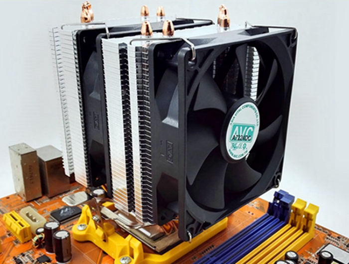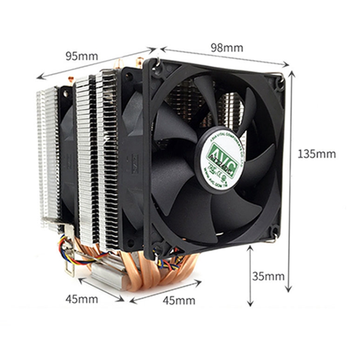 4Pin CPU Cooler 1155 1156 AVC Pure Copper 6 Heat Pipe Single Cooling Fan Support Intel AMD