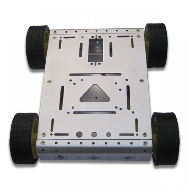 - 2012 latest Arduino 4WD aluminum mobile robot platform. can hold many controllesr, drivers, sensors and RFmodules etc, support plate with controller mounting holes, 2 dof pan and tilt holddown groove, collision switch mounting hole, an be added with sensors.light weight, high strength and no deformation characteristics. unique design and colour,cool feeling.elastic rubber tyres, with damping, wear-resisting, grip strong charastics.