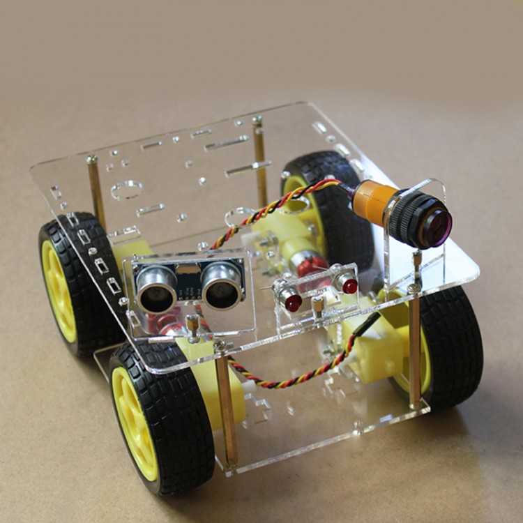 4WD V14 Smart Car Round Chassis Kits Dia 13CM Tracking Obstacle Avoidance Remote Control for Competition