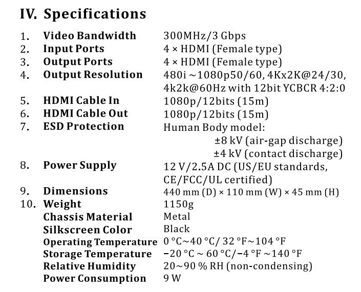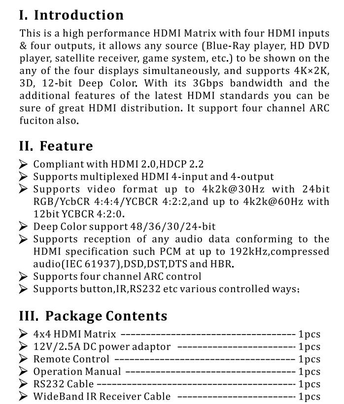 4x4 HDMI Matrix with ARC Control Splitter 3Gbps Support 4Kx2K 3D HDV-A44 User manaul: Click here