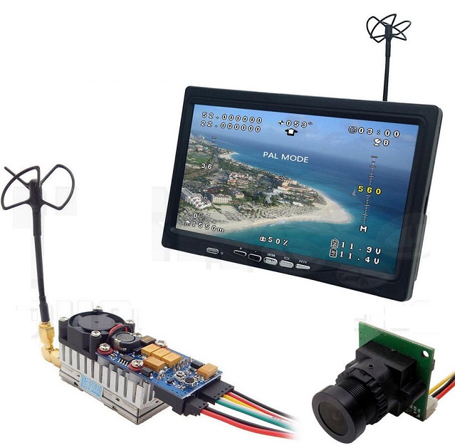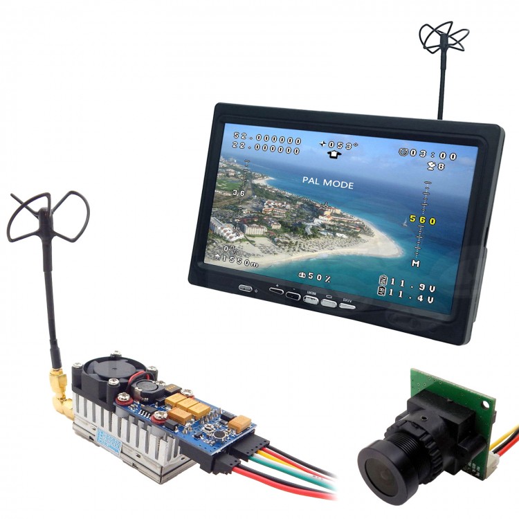 - The package includes a 1000mw 5.8GHz video transmitter,lightweight and small HD camera,a set of cloverleaf antennas and a 7" LCD monitor with built-in 5.8GHz receiver.Simplify your setup with our plug-n-play FPV solution that can be installed in a matter of minutes without soldering or complicated wiring.
