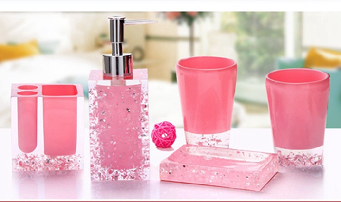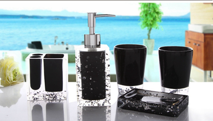 5pcs/Set Resin Bathroom Set Toothpaste Cup Toothbrush Holder Soap Dish Dispenser Set for Hotel Home