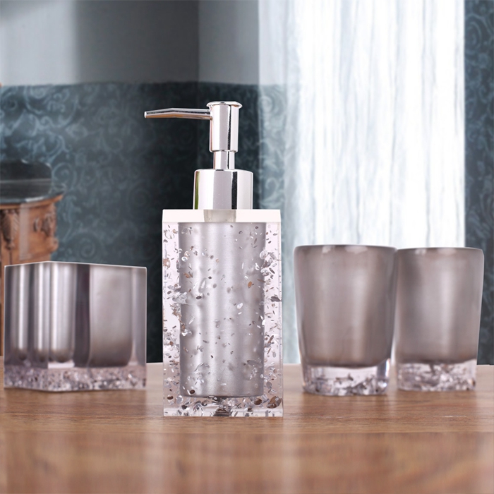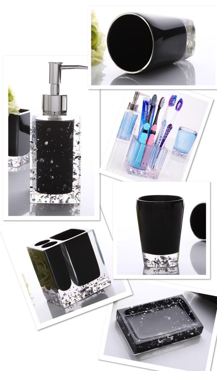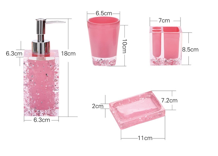 - Including one lotion dispenser, two cups, one toothbrush holder, one soap dish