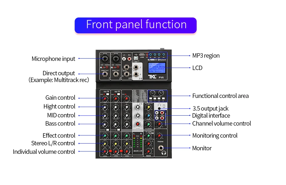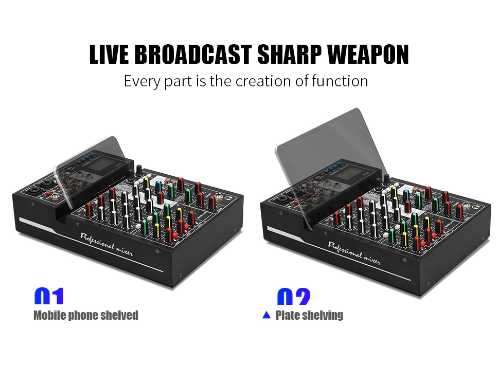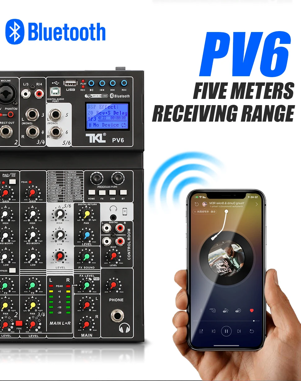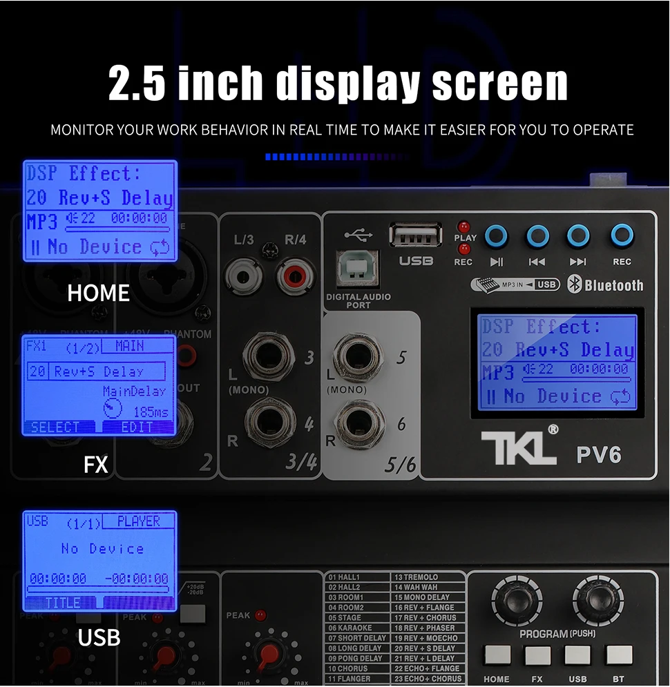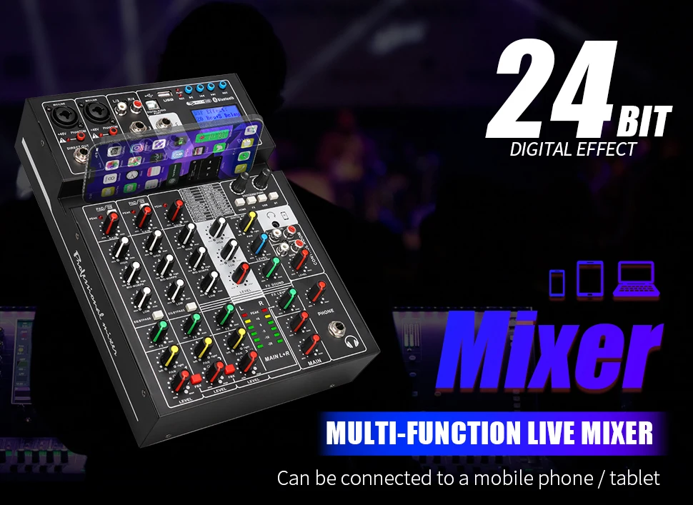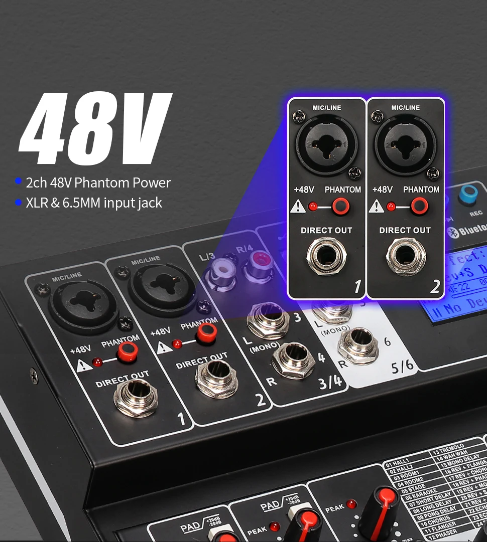 6 Channel DJ Sound Mixer Portable Digital Mixer With 24 DSP Echo OTG Jack USB 48V Phantom Power Sound Card Mixing Console REC