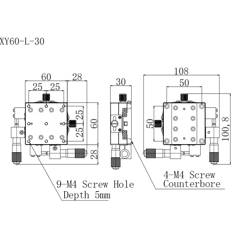 60*60mm XY Axis Manual Displacement Platform High Precision Trimming Station Sliding Table XY60-L-30