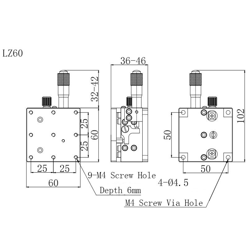 60*60mm Z Axis Manual Displacement Platform Linear Stage Adjustable Sliding Table LZ60