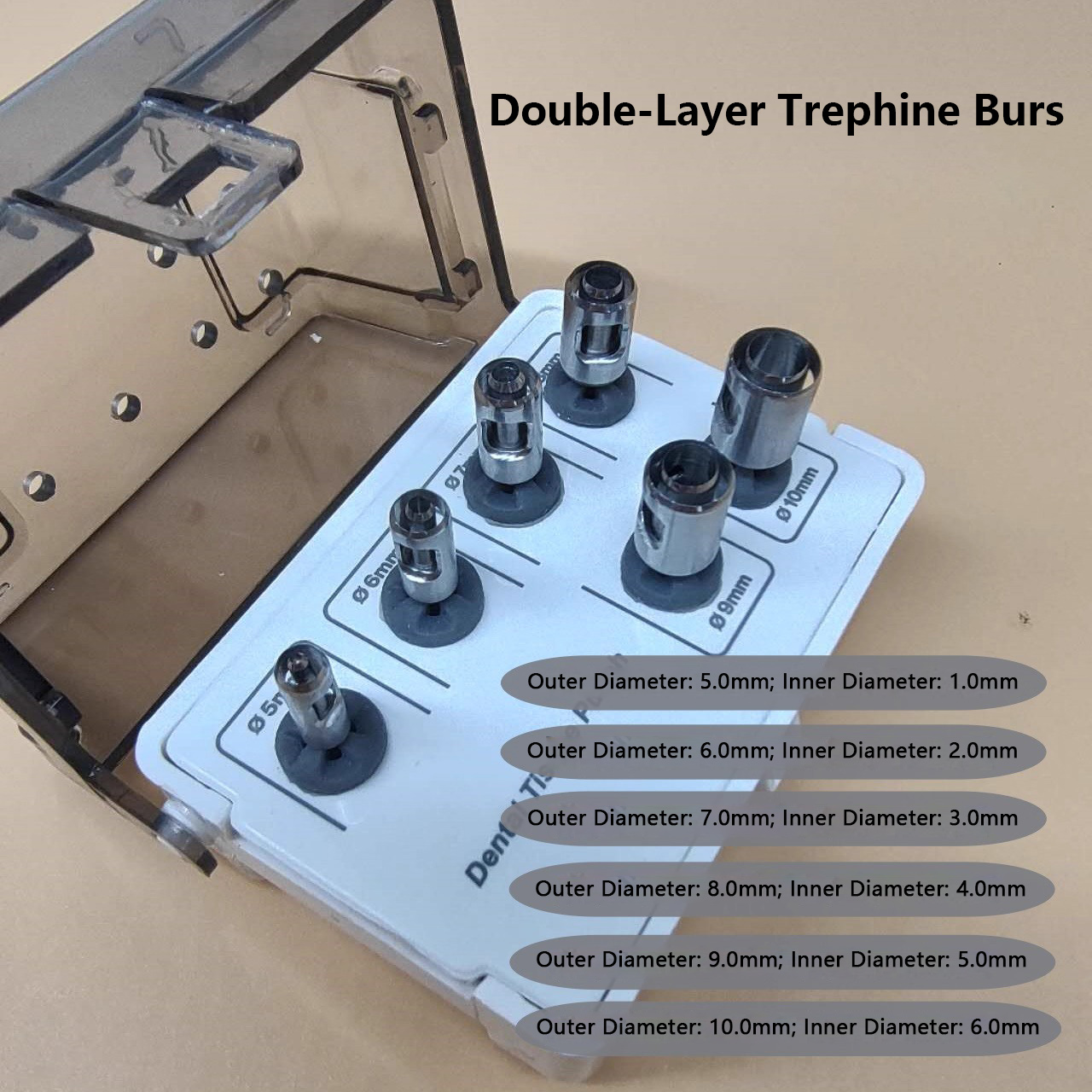6PCS Dental Implant Double-Layer Trephine Burs Dental Tissue Punch Set for Implant Surgery