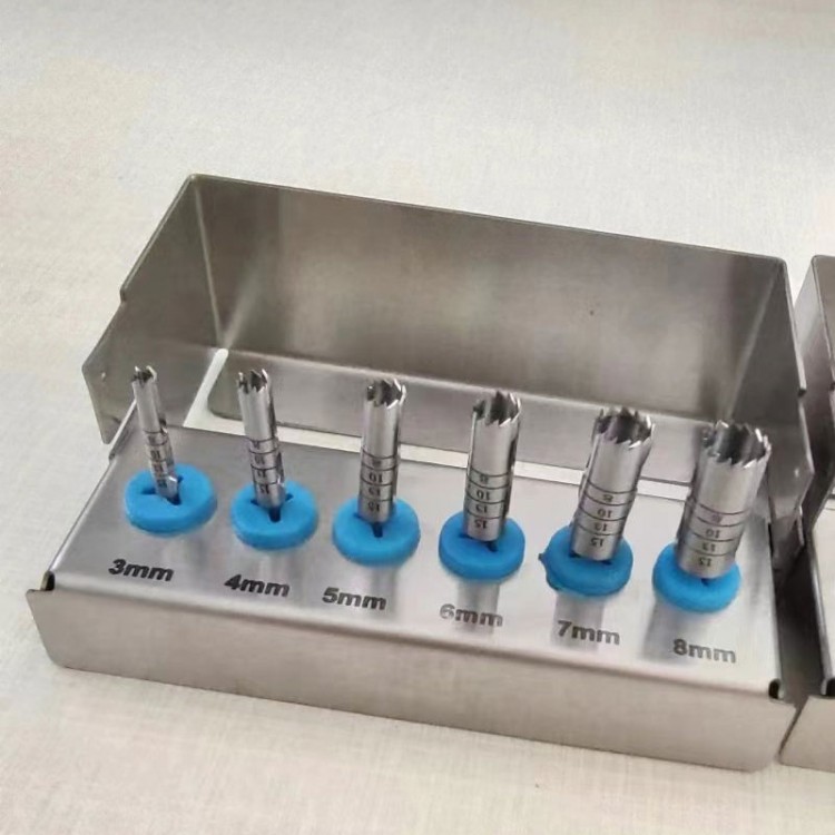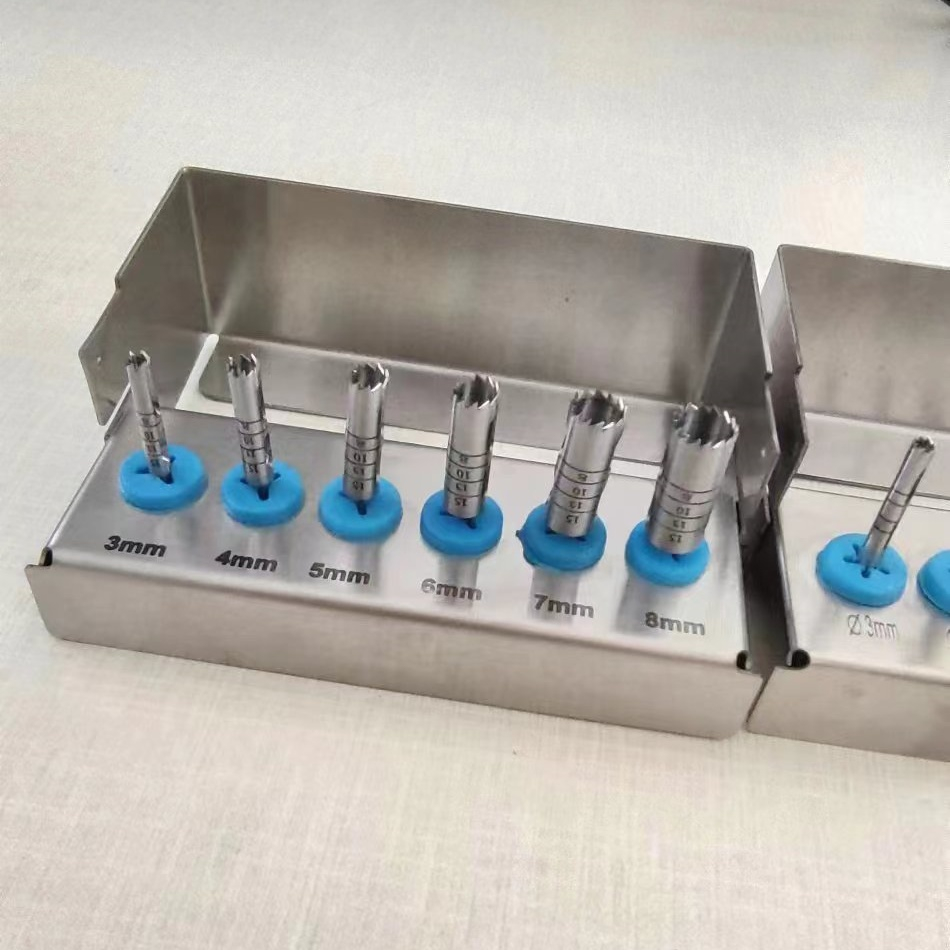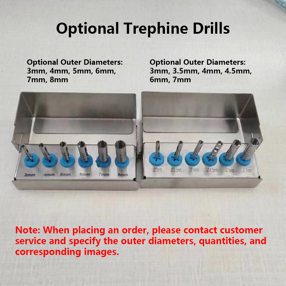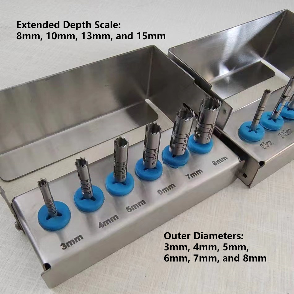 6PCS Extended Trephine Drills Dental Trephine Burs (3mm–8mm Optional) with Sterilization Box