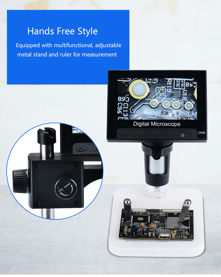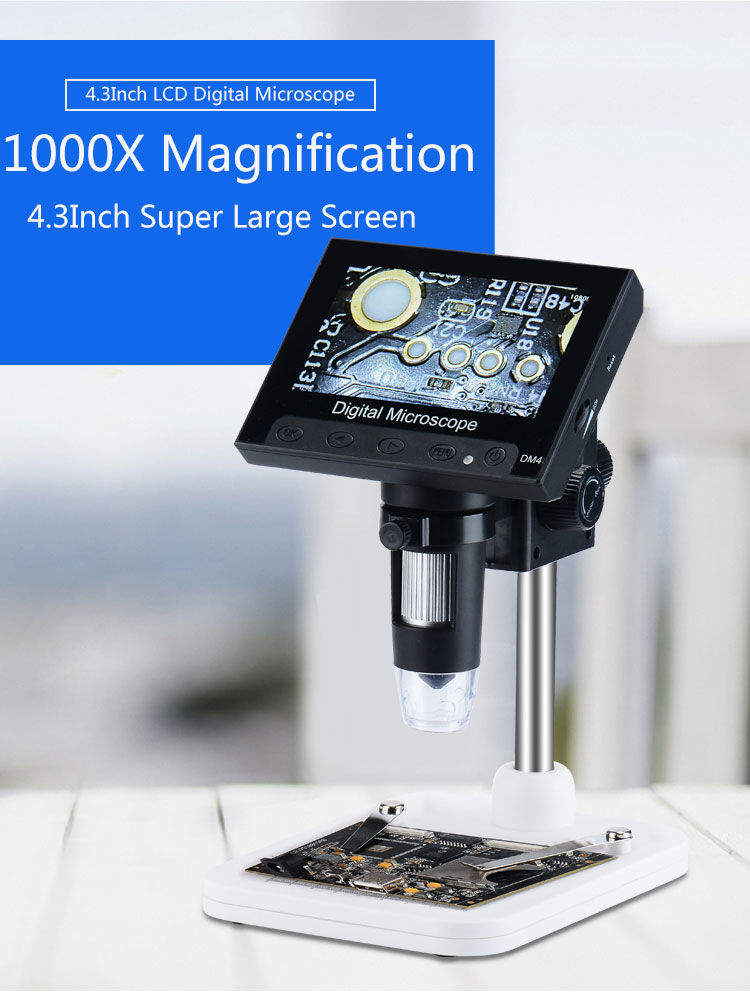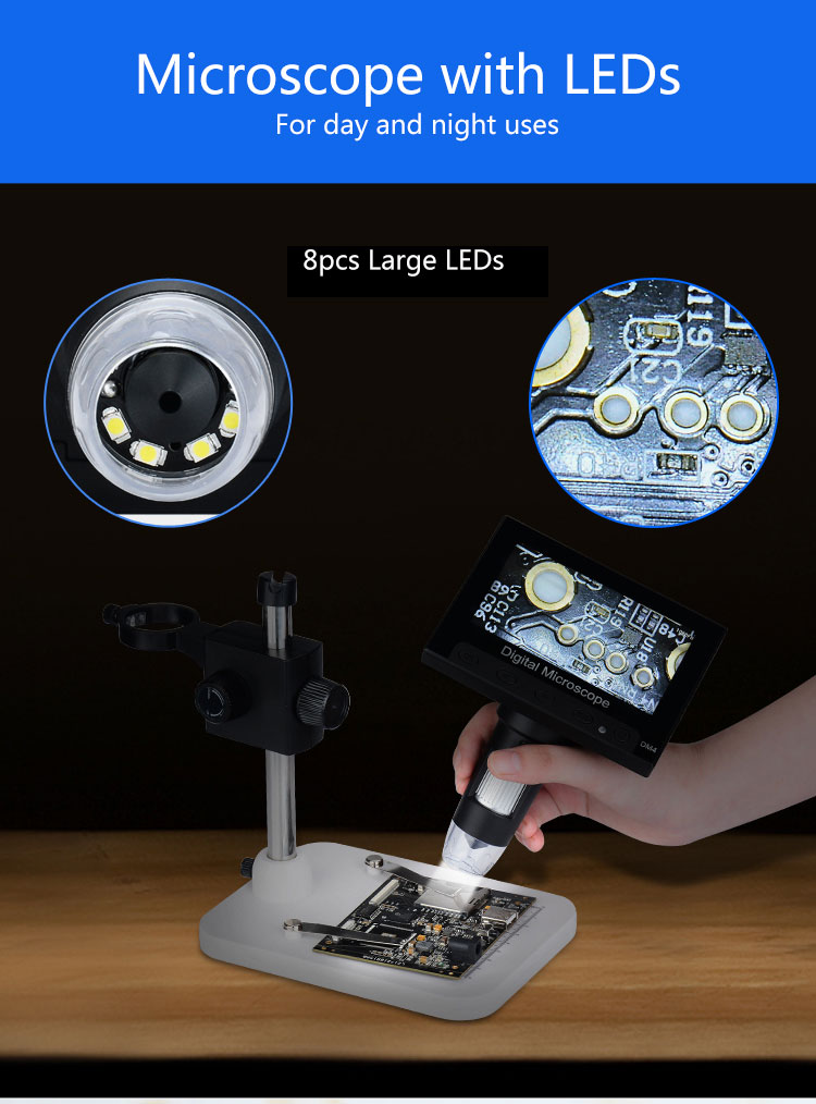 720P VGA Handheld Digital Microscope 4.3'' LCD 8LEDs for Circuit Board Industry Clock Detection DM4