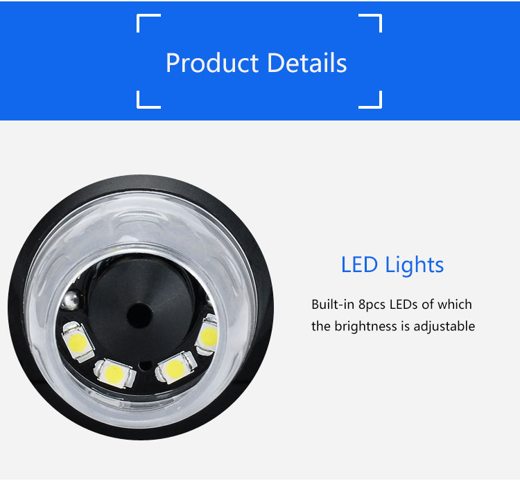 - Light Source: 8pcs LEDs (Adjustable Brightness)