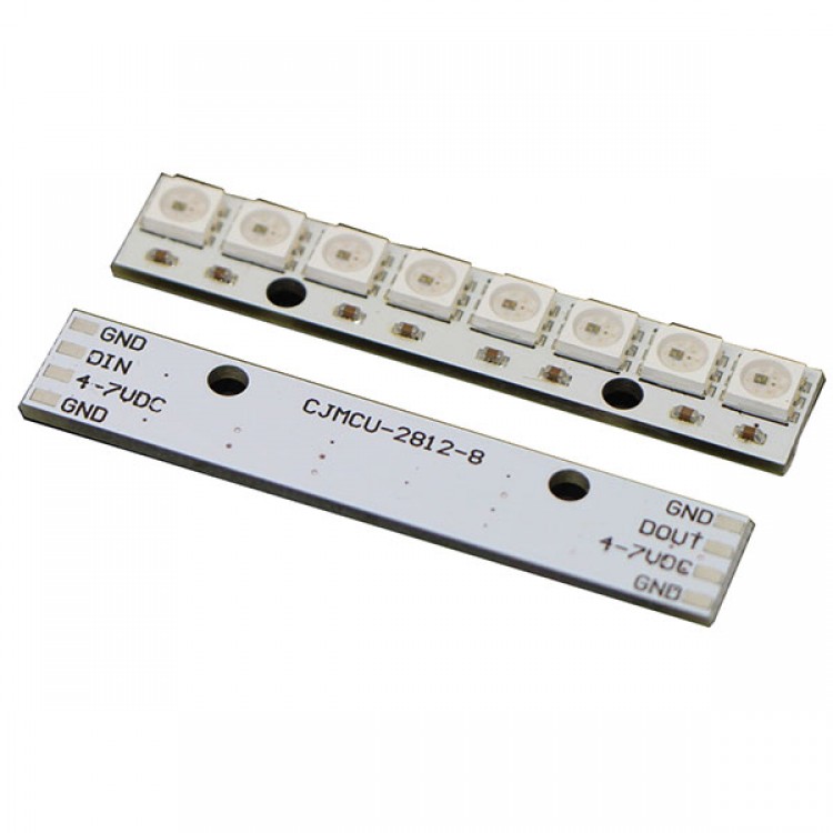 - This is the NeoPixel Stick from Adafruit, a small chainable board with eight 5050 WS2812 RGB LEDs. The WS2812s are each addressable as the driver chip is located inside the LED. Each NeoPixel Stick has ~18mA constant current drive so the color will be very consistent even if the voltage varies, and requires 5V.