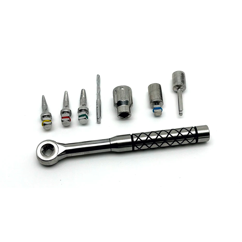 8-Piece Dental Implant Removal Kit Dental Instrument with Bone Expander Manual Knob & Ratchet Wrench