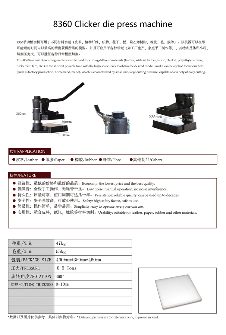 8360 Leather Cutting Machine Manual Leather Mold Die Cutting Machine