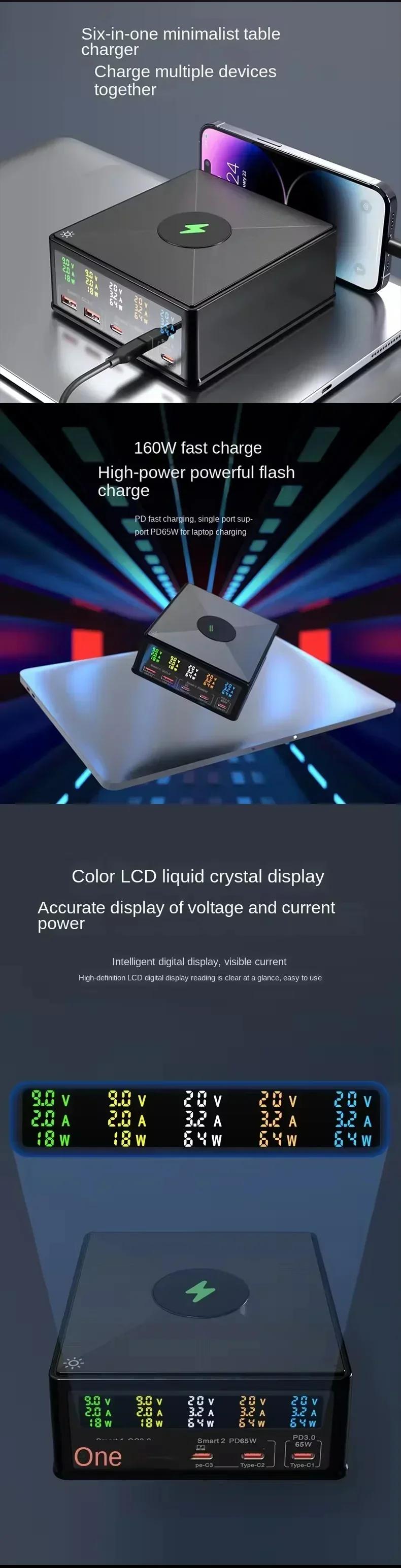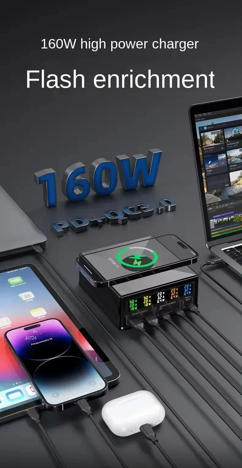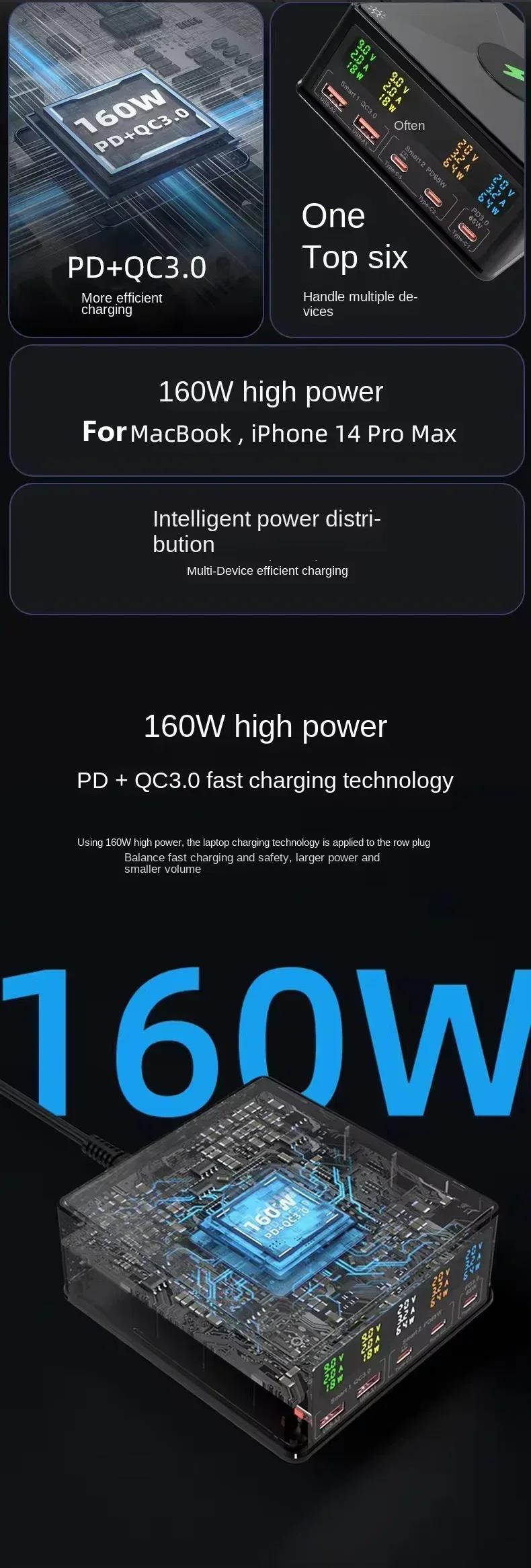 868H 160W 5-Port High Power USB Charger Station Intelligent Power Distribution PD+QC3.0 Fast Charging Station