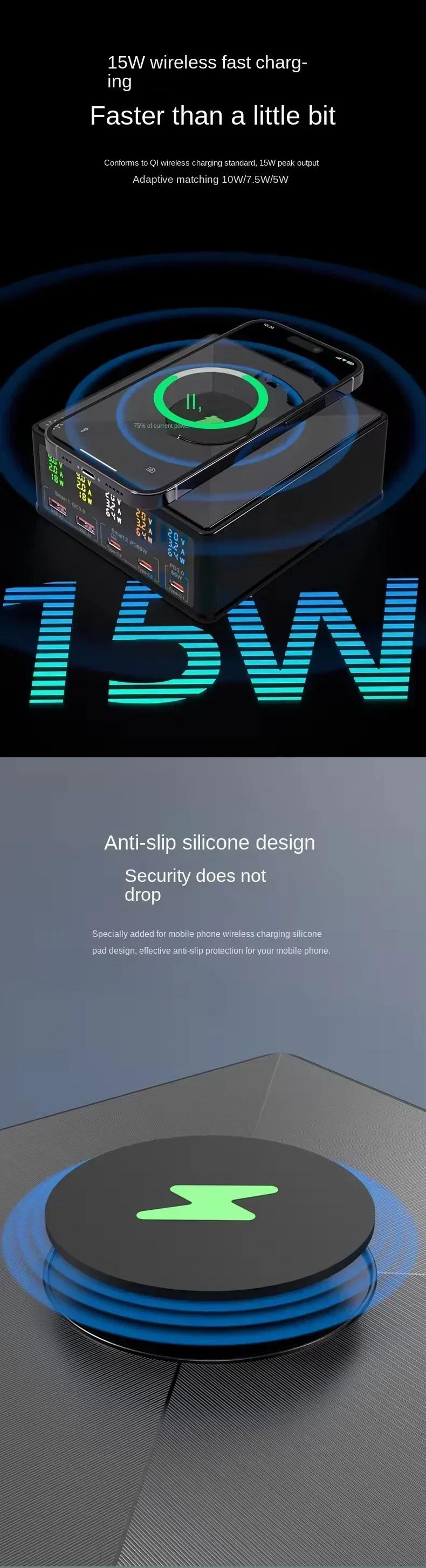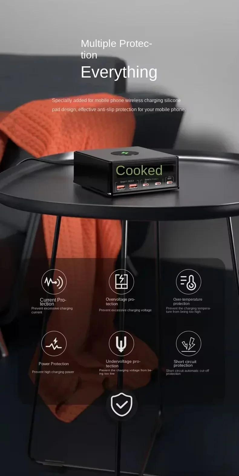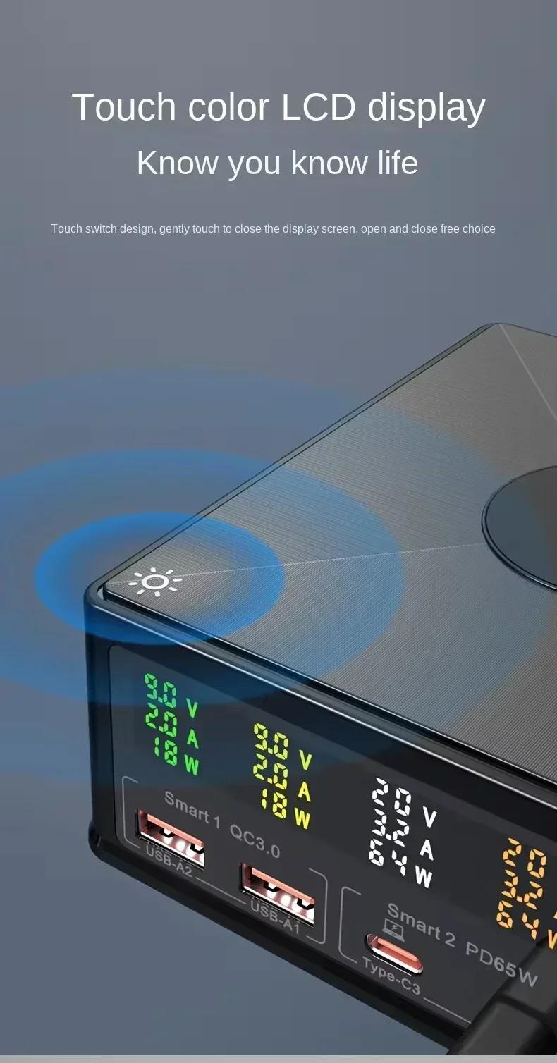 868H 160W 5-Port High Power USB Charger Station Intelligent Power Distribution PD+QC3.0 Fast Charging Station
