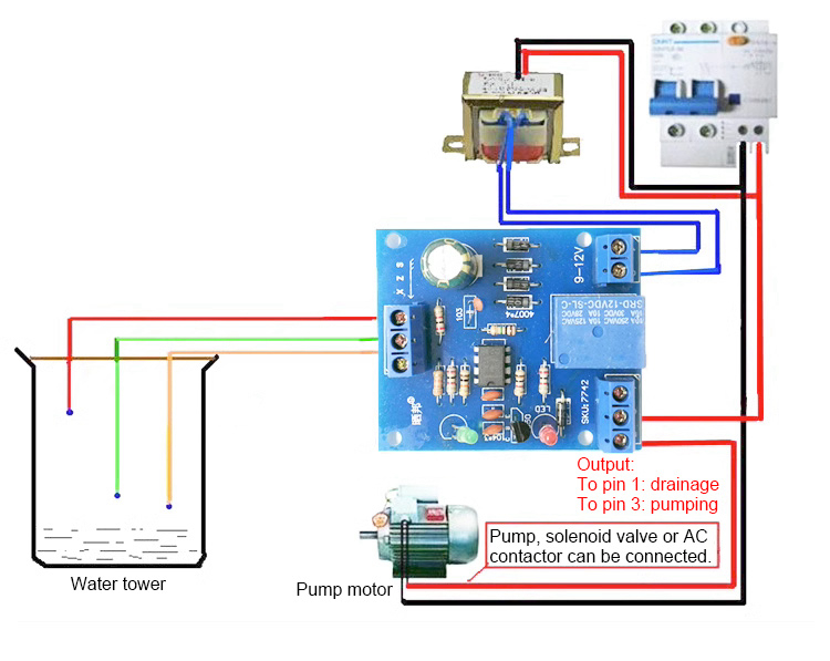 It can automatically turn on a pump when a pool (water tower) is short of water. When it is full of water, the controller will automatically stop pumping.