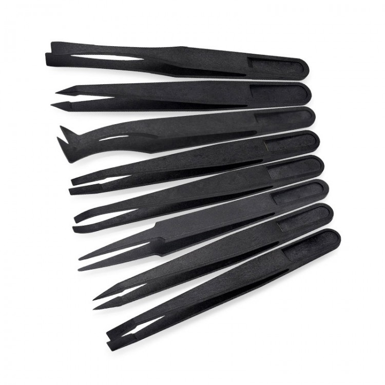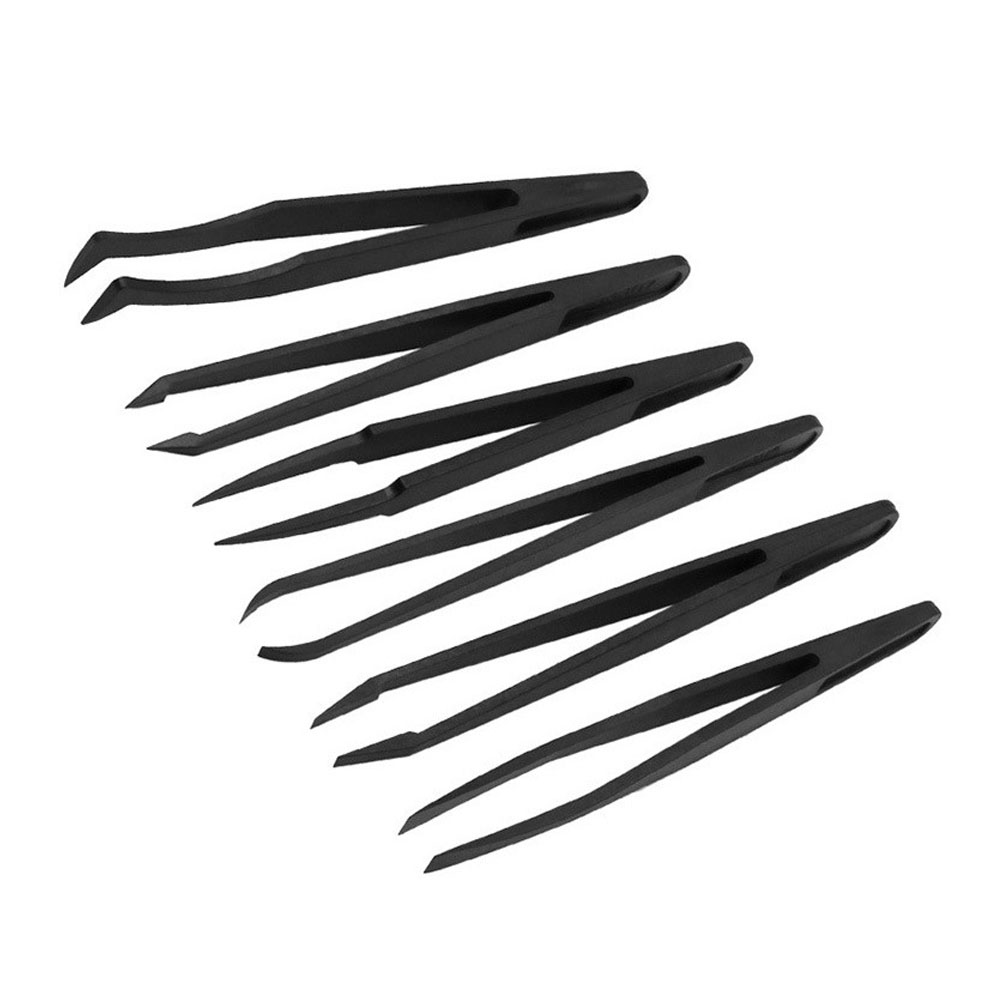 A Set of Anti-Static Black Plastic Tweezers High Quality and Precision Carbon Fiber Tweezers for Electronics Repair
