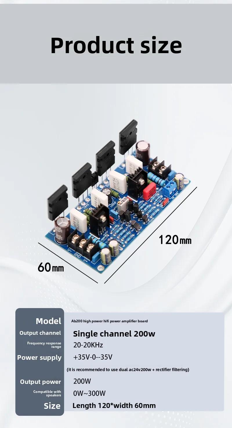 AB200 Mono 200W High Power HiFi Power Amplifier Board 1943+5200 Pair Tube Amplifier Module for 0W-300W Speakers