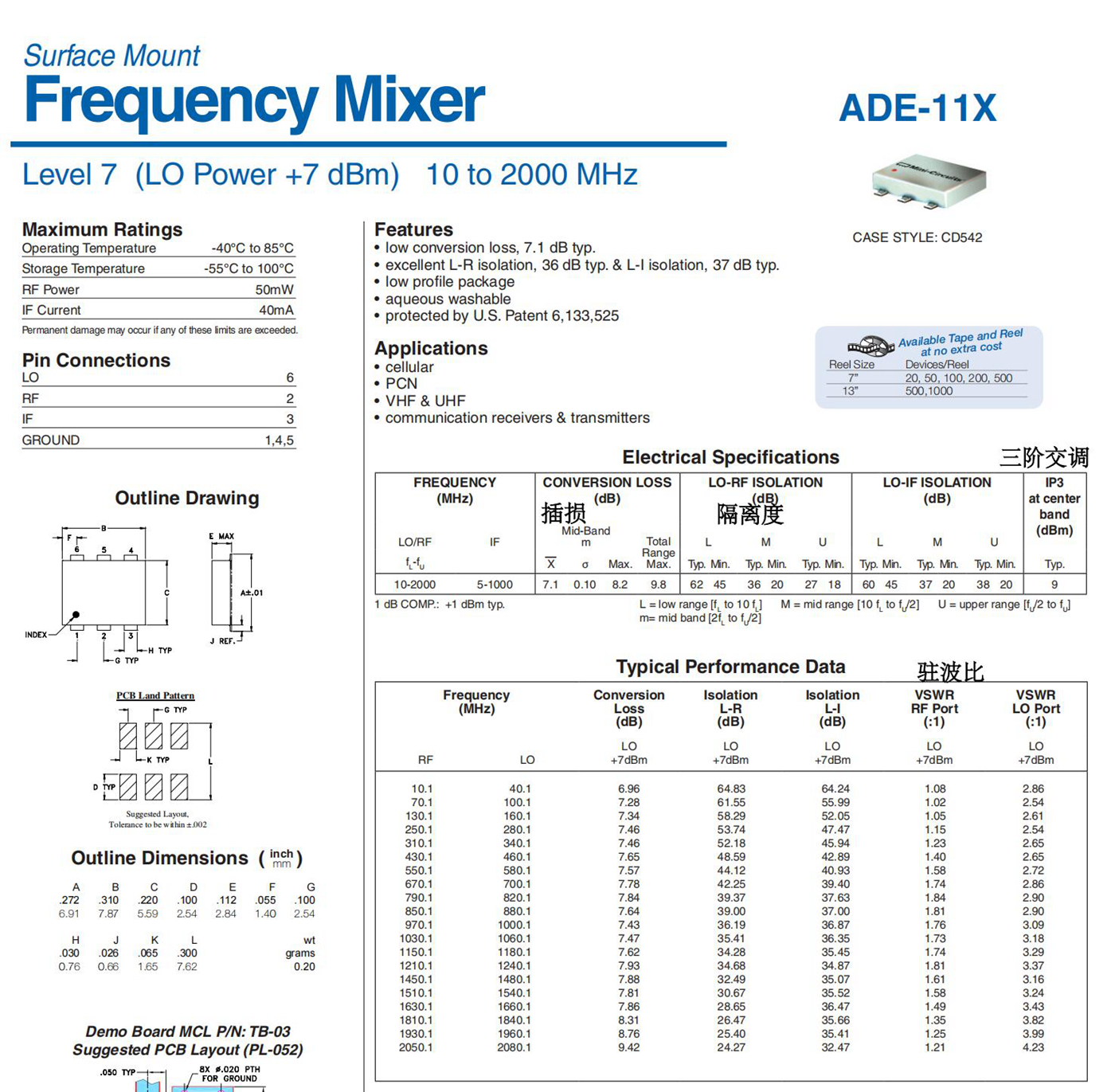 ADE-11 Passive Frequency Mixer 10-2000MHz RF Mixer Upconversion Downconversion SMA Connectors