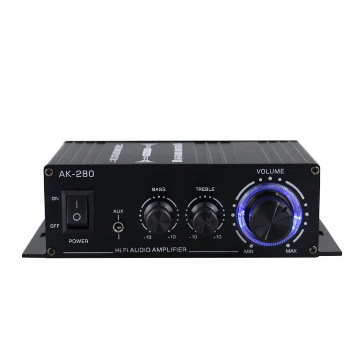 AK-280 Portable Vehicle Mini Power Amplifier 2.0 Channel 40W+40W HiFi Stereo Audio Amplifier with 12V/5A Power Adapter
