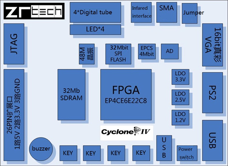 Altera CycloneIV FPGA Learning Board EP4CE6E22C8N 32Mbit SPI FLASH for DIY
