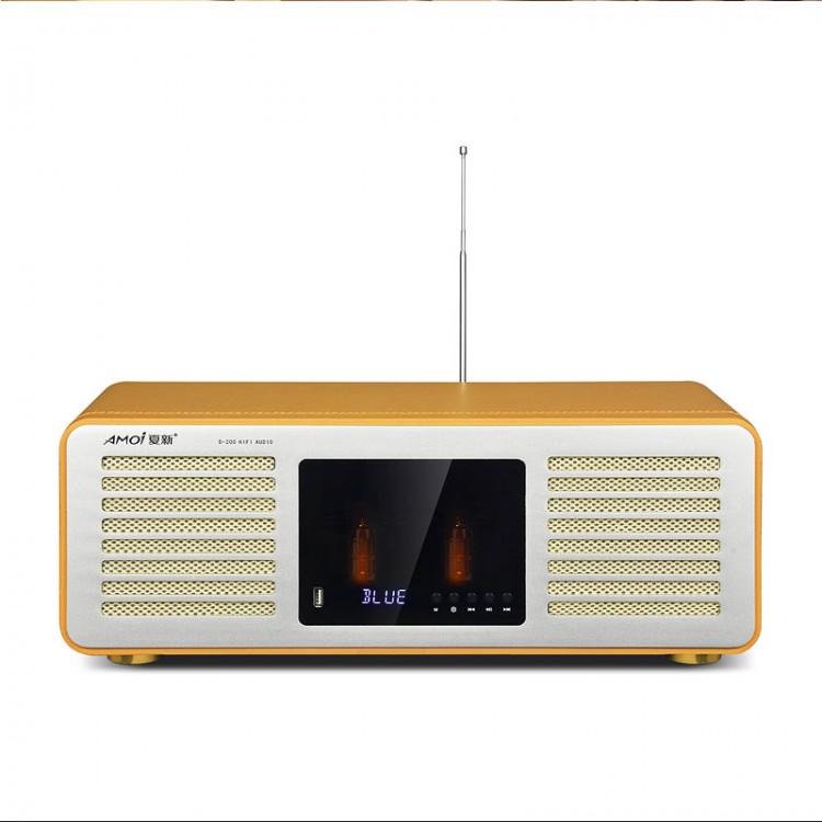 Amoi D-200 Dual Electronic Tubes Leather HiFi Speaker Retro Desktop Bluetooth5.0 Audio Speaker Built-in FM Receiving Module