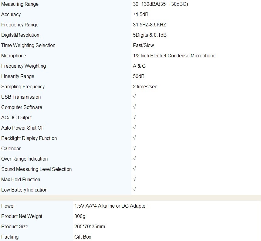 AR844 Sound Noise Level Meter Decibel Meter with Software and USB Cable