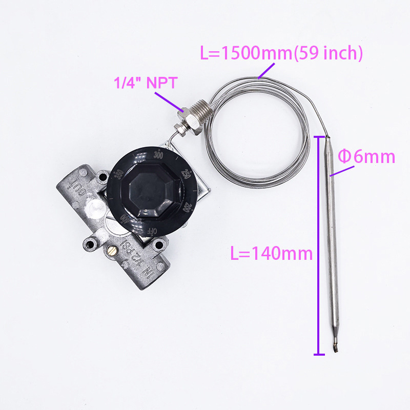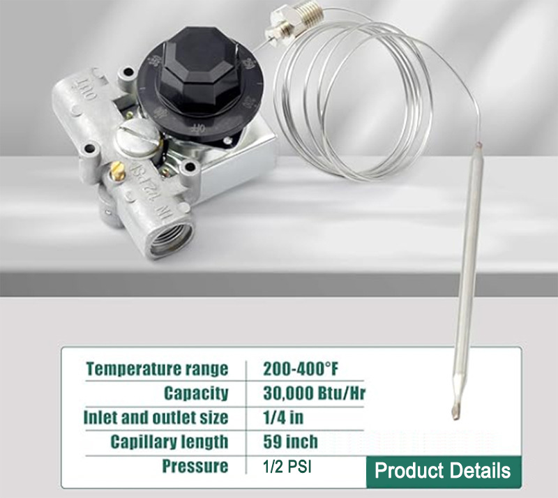ARB Gas Thermostat Valve Fryer Temperature Controller 200-400℉ with 1/4" NPT – Commercial Use