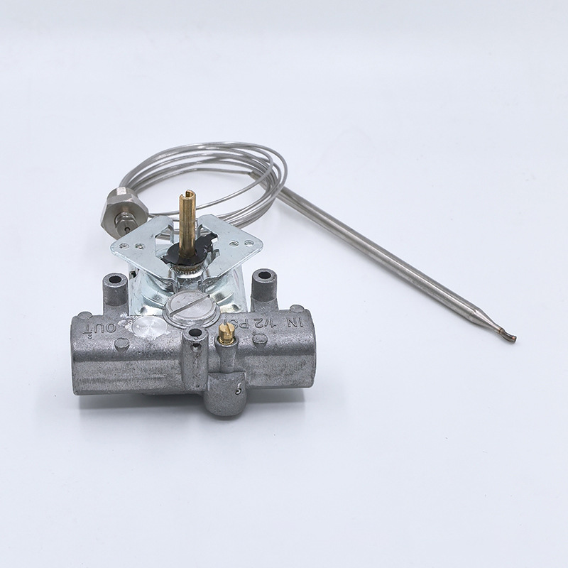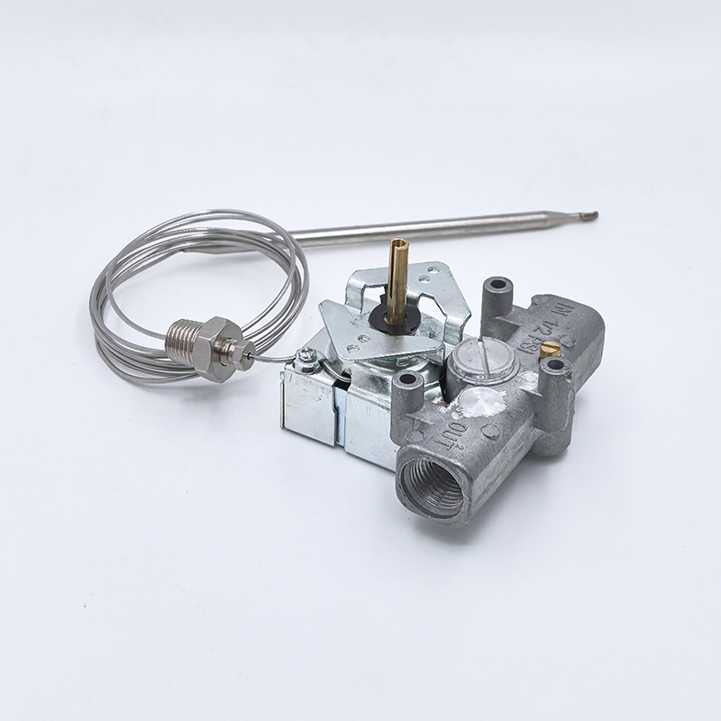 It is a gas temperature control valve that does not require an external power supply. It automatically regulates the temperature and allows for adjustment of the pilot flame. It is compatible with both natural gas and liquefied petroleum gas.